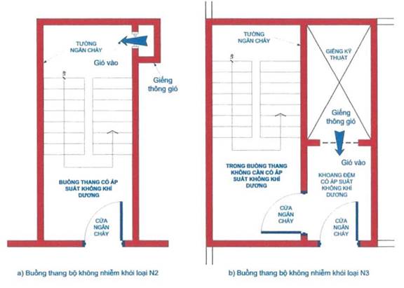 Hình I.9 – Minh họa buồng thang bộ không nhiễm khói loại N2 và N3