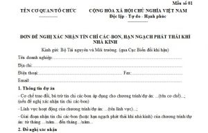 Đơn đề nghị xác nhận tín chỉ các-bon, hạn ngạch phát thải khí nhà kính...