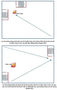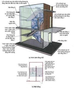 Ngăn cách lối ra thoát nạn của tầng hầm với lối ra thoát nạn của các tầng xuống khi bố trí chung trong một buồng thang bộ