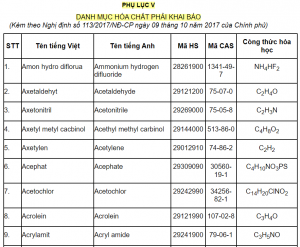 – Danh mục hóa chất phải khai báo được ban hành tại Phụ lục V kèm theo Nghị định này.