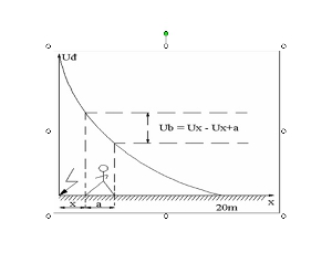 - Càng xa điểm đường dây chạm đất điện áp giáng càng bé, khoảng cách > 20m thì điện áp =0.
