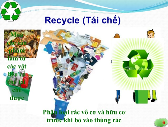 Rác tái chế: Đây là một loại rác khó phân hủy nhưng có thể đưa vào tái sử dụng nhằm phục vụ mục đích, lợi ích của con người. Các loại rác có thể tái chế như thùng carton, chai nhựa, sách báo cũ hay các vật dụng kim loại…