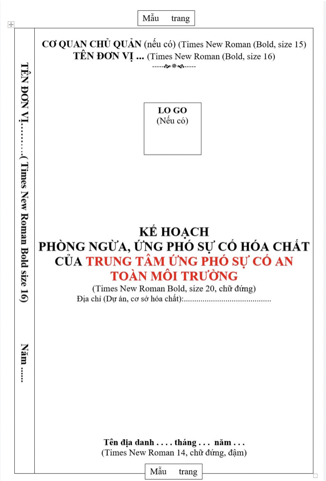 Mẫu Kế hoạch phòng ngừa ứng phó sự cố hóa chất