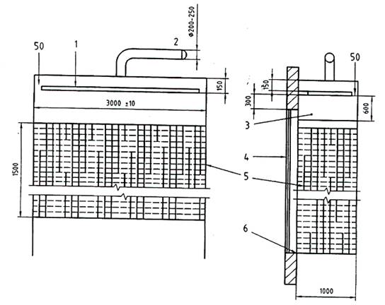 Bố trí chung của hệ thống phải phù hợp với Hình A.1 và các chi tiết của bộ phận chụp phải phù hợp với Hình A.2. Bộ phận chụp phải được chế tạo từ kim loại tấm có chiều dày từ 1,0 mm đến 1,5 mm, có các phương tiện để kẹp chặt bộ phận chụp với mặt mút của lò hoặc kết cấu đỡ sao cho mối nối có độ kín khí. Bên trong của bộ phận chụp, cách đỉnh 150 mm, có lắp chặt tấm canxi silicat dày (15 ± 5) mm để hoạt động như một vách ngăn. Phải có khe hở 50 mm ở ba mặt bên giữa vách ngăn và vỏ của bộ phận chụp để lưu thông các dòng khí. Tại đỉnh của bộ phận chụp, ở vị trí giữa phải có một cửa ra cho ống dẫn bằng kim loại với đường kính tối thiểu là 200 mm để nối với một quạt hút thích hợp.