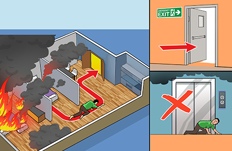 – Bình tĩnh suy xét, tìm và di chuyển ra lối thoát nạn (hành lang, thang thoát hiểm) – Không sử dụng thang máy