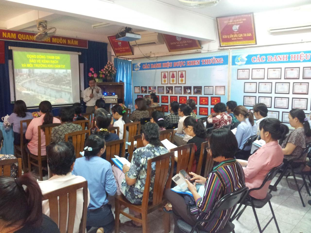 Sáng thứ 6 ngày 10/11/2017, tại hội trường Hội Liên Hiệp Phụ Nữ Quận 3 (299 Điện Biên Phủ, Phường 7, Quận 3) đã diễn ra buổi tập huấn Kiến thức và Pháp luật về Bảo vệ môi trường. Với chuyên đề tập huấn: “Bảo vệ nguồn nước kênh rạch và các mô hình nhóm cộng đồng tham gia bảo vệ môi trường.”