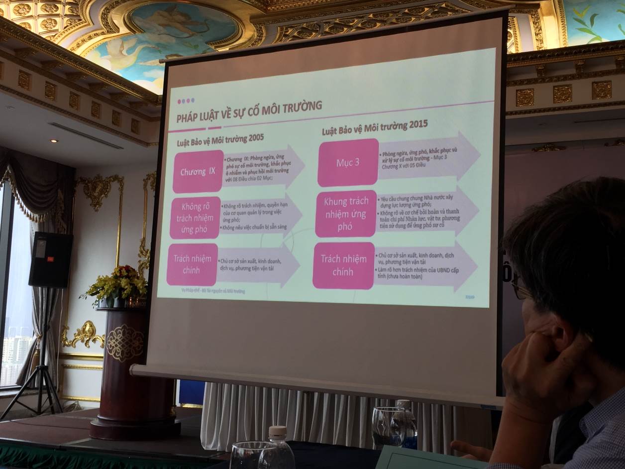 Hội thảo gồm 2 phiên. Ở phiên thứ nhất, bà Nguyễn Hoàng Phượng – Cố vấn độc lập, đại diện Vụ Pháp chế Bộ Tài nguyên và Môi trường đã có báo cáo tổng quan về kết quả rà soát các quy định pháp luật hiện hành về phòng ngừa, ứng phó sự cố môi trường. Ngoài ra, dự thảo Quyết định của Thủ tướng Chính phủ ban hành quy chế phòng ngừa, ứng phó sự cố môi trường cũng được giới thiệu. Phiên thứ hai dành thời gian để các đại biểu trao đổi, thảo luận về Dự thảo quy chế ứng phó sự cố môi trường.