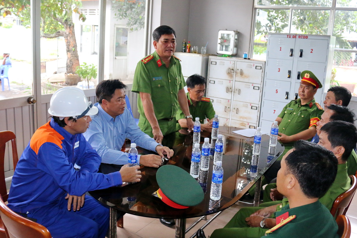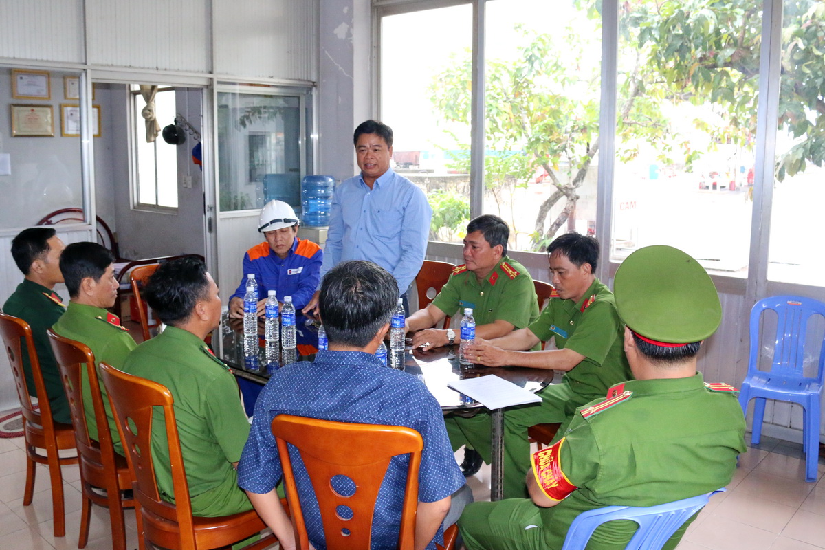 Kết thúc buổi thực tập phương án chữa cháy, Lãnh đạo Cảnh sát PCCC & CNCH Công an tỉnh An Giang, Đội PCCC Châu Phú cùng với Ban giám đốc và các tổ/nhóm họp để rút kinh nghiệm.