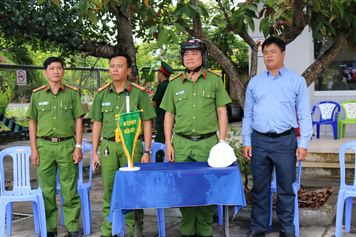 Phó giám đốc Công ty Phạm Quốc Thiên, Phó ban chỉ huy, thay mặt Công ty, Đội phòng cháy chữa cháy cơ sở chân thành cảm ơn sự quan tâm phối hợp của Cảnh sát PCCC & CNCH Công an tỉnh An Giang, Đội PCCC Châu Phú đã tạo điều kiện thuận lợi để đội PCCC cơ sở rèn luyện kỹ năng chữa cháy, sử dụng thành thạo các phương tiện chữa cháy tại chỗ để dập tắt kịp thời các đám cháy vừa mới phát sinh; Tăng cường nâng cao ý thức trách nhiệm của tất cả cán bộ công nhân viên thực hiện tốt các biện pháp an toàn PCCC & CNCH, nâng cao chất lượng công tác phối hợp giữa lực lượng chữa cháy cơ sở với lực lượng Cảnh sát PCCC&CNCH trong việc xử lý tình huống cháy nổ xảy ra tại đơn vị, đảm bảo an toàn tuyệt đối trong hoạt động sản xuất kinh doanh.